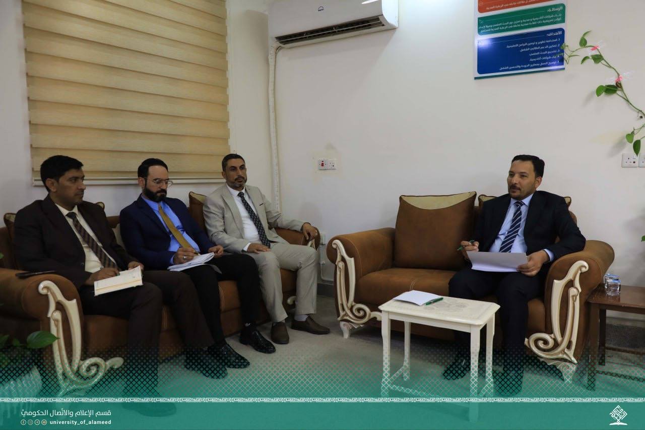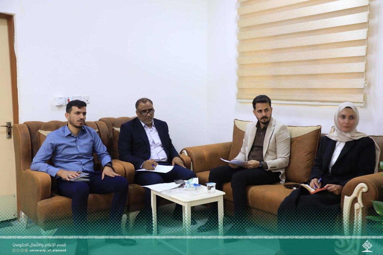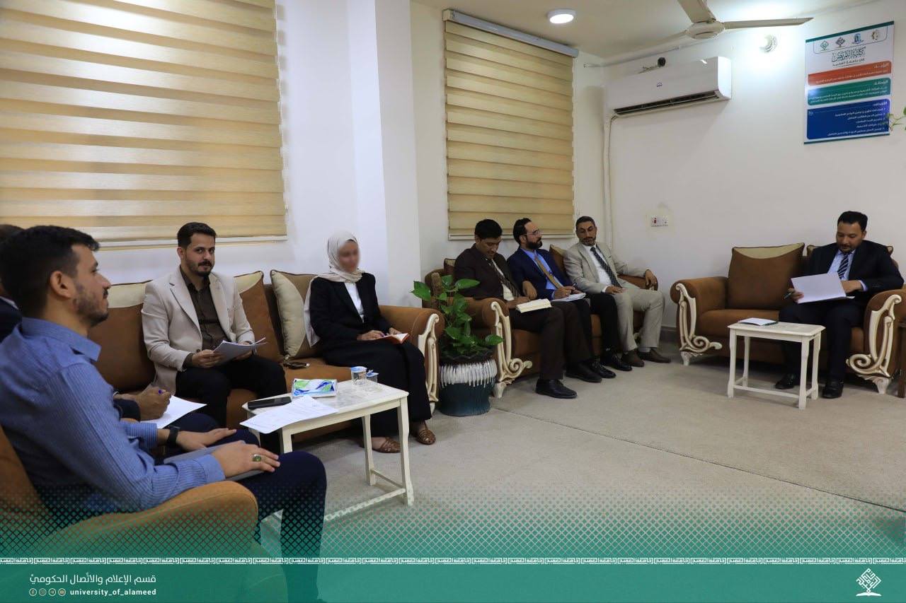 The committee specialized in updating the strategic plan objectives at the College of Nursing held a meeting, under the supervision of the College Dean, Prof. Dr. Dhiyaa Kareem Al-Bayati. The meeting focused on reviewing the current objectives, evaluating the level of achievement attained, and discussing proposals and recommendations aimed at developing these objectives in alignment with Al-Ameed University's vision, mission, and general goals.