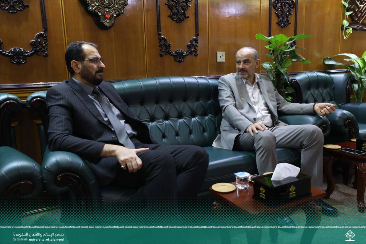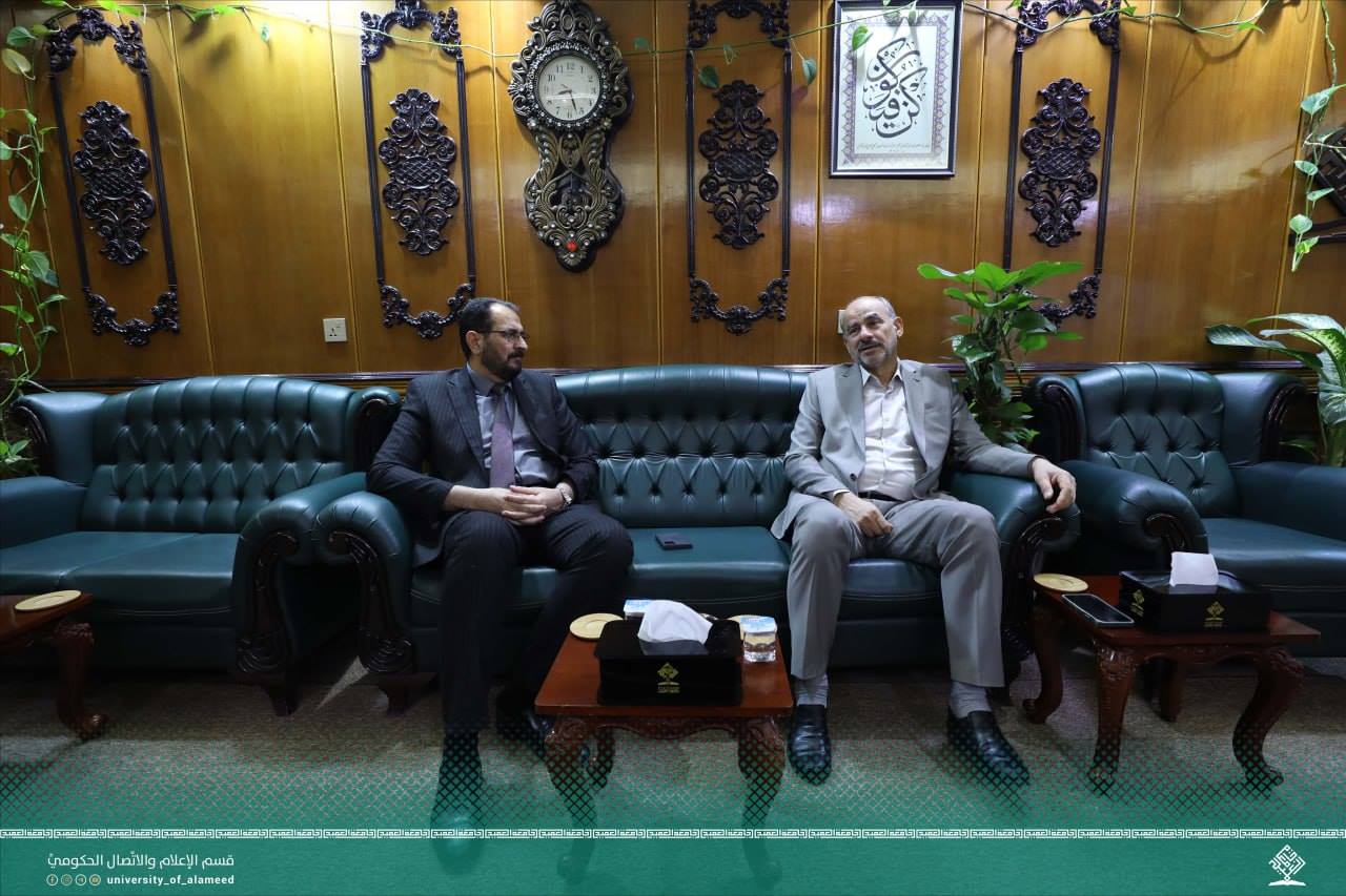 The President of the Education and Higher Education Authority at the Al-Abbas (p) Holy Shrine and member of its Board of Directors, Prof. Dr. Abbas Rashid Al-Daddah Al-Mousawi, visited Al-Ameed University and was received by the University President, Prof. Dr. Jawdat Nouri Al-Jashaami.