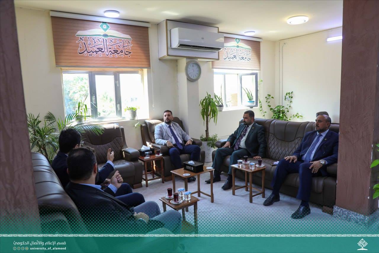 استقبلت جامعة العميد وفداً من المجمع العلمي للقرآن الكريم في العتبة العباسية المقدسة، ممثلاً بمدير مركز المشاريع القرآنية السيد حسنين الحلو، وذلك في إطار التحضيرات الجارية لإقامة مسابقة النور القرآنية الجامعية الدولية التي تستضيفها الجامعة بتنظيم من قسم النشاطات الطلابية