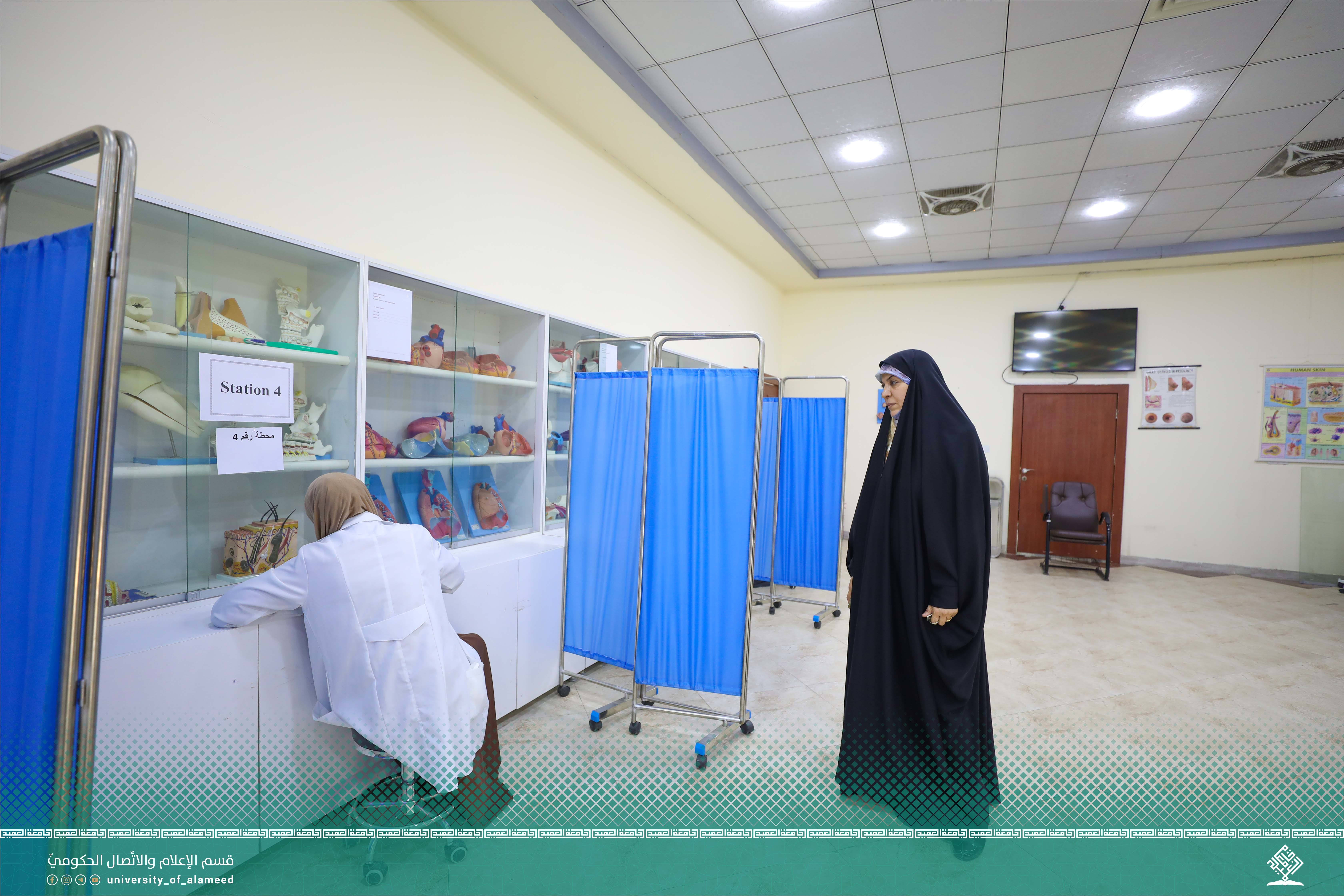 وجاء تنظيم هذا الامتحان على وفق الانموذج العالمي لنظام الأوسكي، وبإشراف أساتذة المادة، لما يتميز به من دقة وموضوعية في قياس مستوى المهارات السريرية والقدرات التشخيصية لدى الطلبة، إذ تضمّن محطات متعددة صُمّمت بعناية لمحاكاة الحالات السريرية الواقعية، مع تطبيق معايير زمنية وتقويمية صارمة تضمن الشفافية والعدالة.