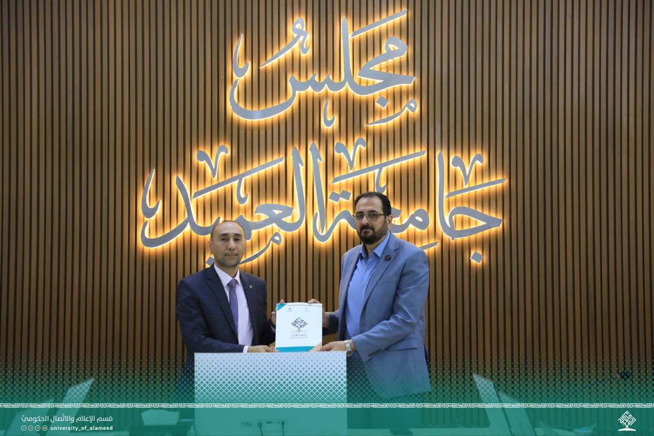 وفي ختام اللقاء، قدّم عميد كلية الطب إلى السيد رئيس الجامعة النسخة النهائية من ملف الاعتماد، تمهيدًا لتقديمها إلى المركز الوطني لاعتماد كليات الطب في العراق.