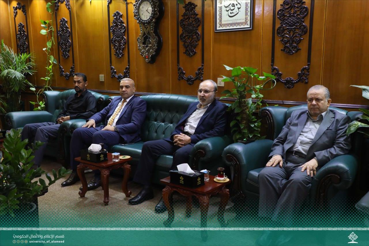 استقبل رئيس جامعة العميد الأستاذ الدكتور جودت نوري الجشعمي، وفداً من دائرة صحة كربلاء المقدسة برئاسة مديرها العام الدكتور صباح الموسوي، بحضور مساعد رئيس الجامعة للشؤون العلمية الأستاذ الدكتور ميثم حميد القنبر، ومساعد رئيس الجامعة للشؤون الإدارية والقانونية الأستاذ الدكتور مشتاق كريم عبد الرحيم، وعميد كلية الطب الأستاذ الدكتور رياض مصطفى مرتضى، وعدد من رؤساء الفروع العلمية في الكلية.
